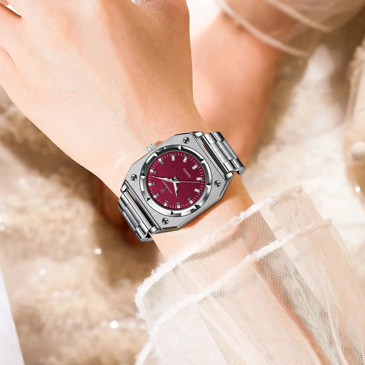 Crafted for women who value style and confidence, this watch elevates every outfit with its luminous square dial and high-quality stainless steel build.